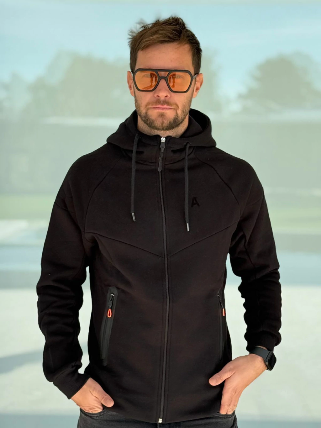 EL MODELO MIDE 1.80 PESA 80 KG USA TALLE L